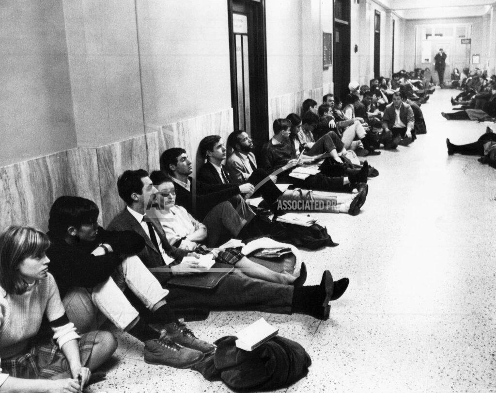 Twenty-five youthful civil rights demonstrators, including two coeds and a Black, staged a sit-in today at the base of the Liberty Bell in Philadelphia’s Independence Hall to dramatize their demand for Federal intervention in Selma.