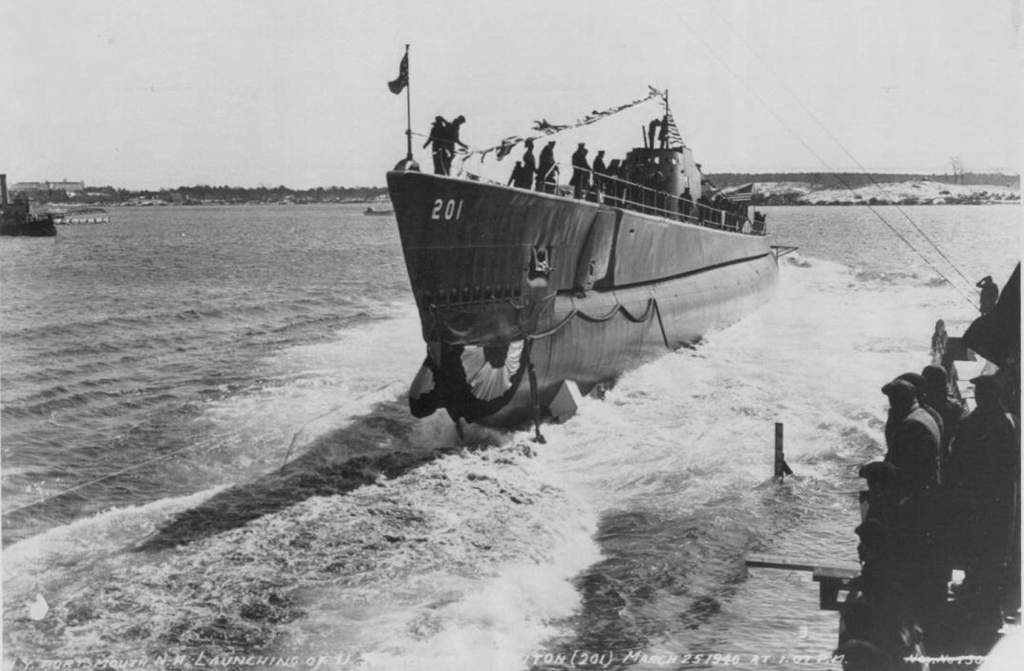 The U.S. Navy Tambor-class submarine USS Triton (SS-201) is launched by the Portsmouth Navy Yard (Kittery, Maine, U.S.A.).