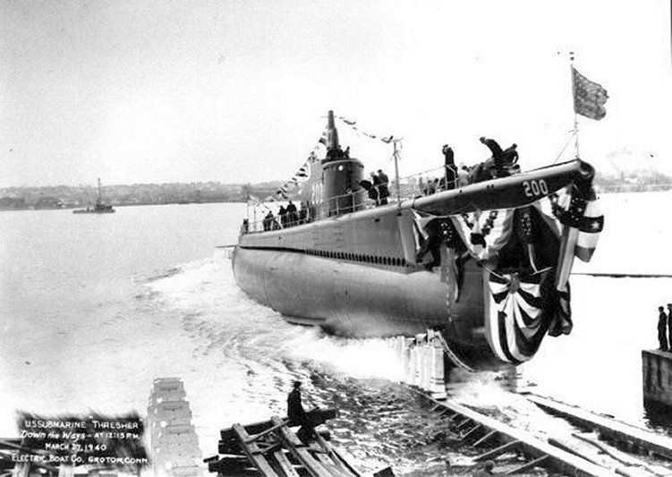 The U.S. Navy Tambor-class submarine USS Thresher (SS-200) is launched by the Electric Boat Co. (Groton, Connecticut, U.S.A.).