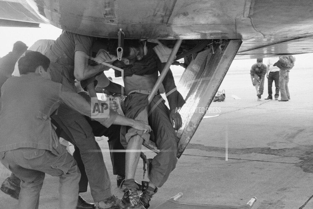 They said they knew of no deaths resulting from this. But aviation experts here said after talking to passengers and stowaways on the plane that between 20 and 30 persons had probably been killed — some run over on take‐off, some dropping away from the wheel wells and the hold. The aviation authorities said the body of one soldier had been found in a wheel well on arrival here; others on the flight said that unknown numbers of others had dropped off the plane in flight. About 270 people were jammed into the cabin of our little 727, only two women and one baby among them. The rest were soldiers. They didn’t talk to each other or us. When the plane arrived in Saigon, the mutinous troops were put under guard. Except for the World Airways Boeing, no aircraft were reported to have landed at Đà Nẵng yesterday.