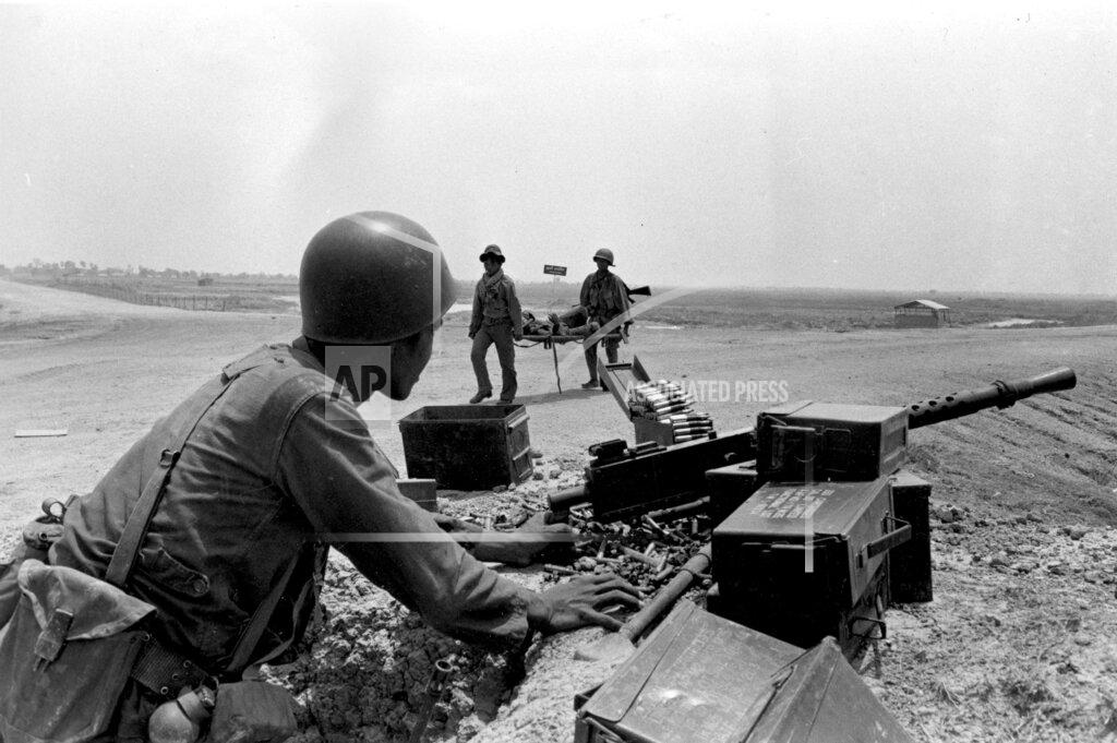 The South Vietnamese soldiers encamped around Gò Dầu Hạ fired no artillery back at the Communists this morning, unlike earlier years when they had nearly unlimited supplies of ammunition. Now, with the cutback in American military aid, they are limited to a few rounds a day for their 105‐mm. and 155‐mm. guns. Nor were there any government air strikes, though the North Vietnamese lines were only a few hundred yards west of town. For the South Vietnamese Air Force has also been forced to curtail its fighter-bomber missions drastically because of shortages of spare parts and aviation fuel.