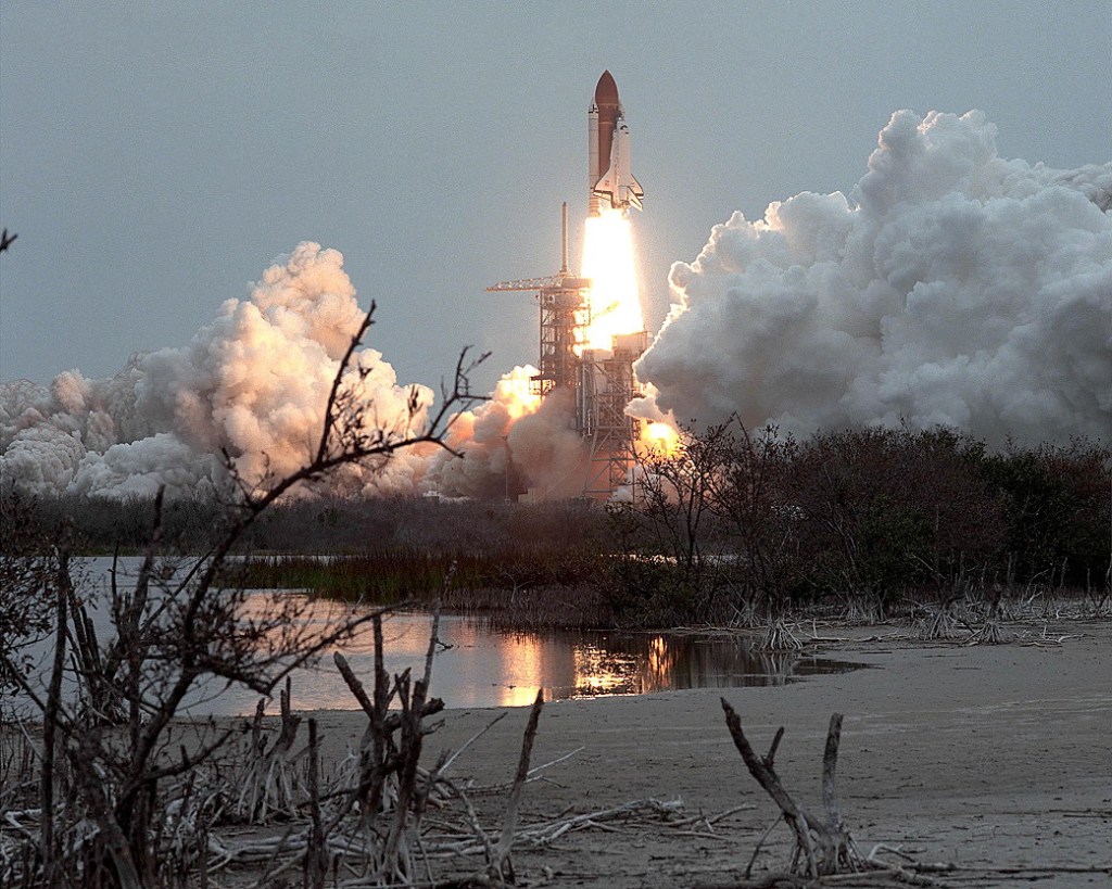 Space shuttle Discovery rocketed off into orbit on a five-day mission to deliver two satellites, test the medical effects of weightlessness and conduct experiments that could lead to potent new drugs. The crew of seven included Senator Jake Garn, Republican of Utah. He is chairman of a Senate subcommittee that oversees the National Aeronautics and Space Administration’s budget. The astronauts released a Canadian communications satellite early this evening and plan to deploy a Navy satellite Saturday. The Canadian satellite, Anik C-1, was sent on its course toward a higher equatorial orbit. The mission is commanded by Colonel Karol J. Bobko of the Air Force, who is making his second shuttle journey.