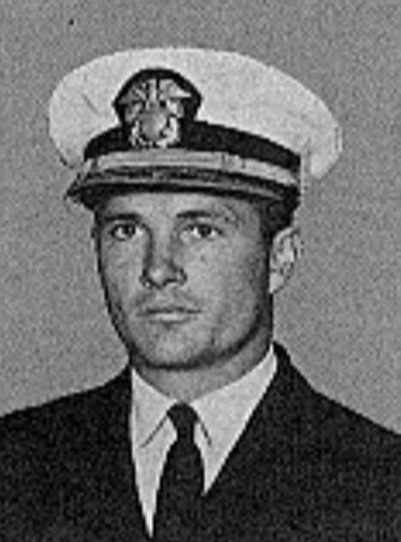 The President of the United States of America takes pride in presenting the Distinguished Flying Cross (Posthumously) to Lieutenant, Junior Grade James Patrick Shea (NSN: 667740), United States Navy, for extraordinary achievement while participating in aerial flight as pilot of an aircraft in Attack Squadron TWO HUNDRED FIFTEEN (VA-215), operating from U.S.S. HANCOCK (CVA-19) on 20 April 1965. Sighting a convoy of enemy trucks during a night road reconnaissance mission in North Vietnam, Lieutenant, Junior Grade, Shea carried out a rocket attack in the face of intense ground fire and succeeded in destroying several vehicles. However, his aircraft did not recover from one of the dives and exploded when it hit the ground.