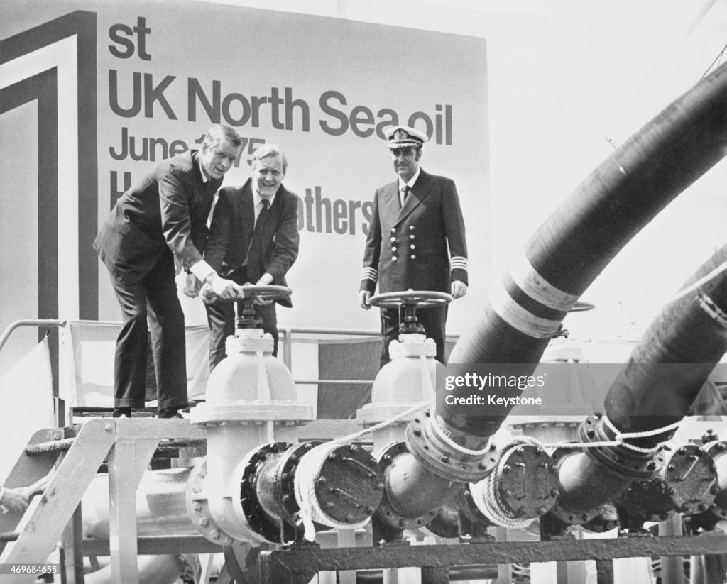 British Secretary of State for Energy Anthony Wedgwood Benn turned a valve and the first oil from Britain’s North Sea reserves was pumped from a tanker to an island refinery in the Thames River estuary. Benn said the occasion called for a day of national celebration, and the sirens of tankers moored at British Petroleum’s Isle of Grain Refinery screamed a salute. The ceremony was a symbolic climax to years of effort to tap and bring ashore the billions of barrels of oil estimated to be under Britain’s sector of the North Sea.