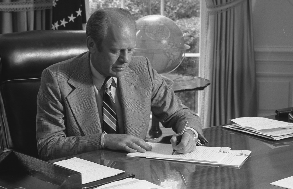 President Ford asked Congress to enact laws that would impose mandatory minimum sentences for certain violent or dangerous federal crimes and for certain multiple offenders, with a shift of emphasis from protecting the rights of criminals to insuring those of their victims. He presented Congress with a long list of criminal justice reforms that he said were urgently needed. Mr. Ford also said that, while he remained “unalterably opposed to federal registration of firearms, Congress should ban the domestic manufacture, assembly or sale — but not the possession — of handguns known as “Saturday night specials.”
