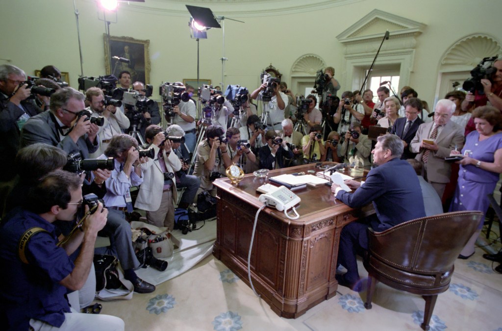 President Reagan today vowed “a major fall offensive” to press Congress to act on a series of domestic priorities, including his sweeping plan to modify the Federal income tax code. At a 30-minute news conference, his first since undergoing major abdominal surgery three weeks ago, a vigorous-looking Mr. Reagan made these remarks on a wide range of foreign and domestic topics:
