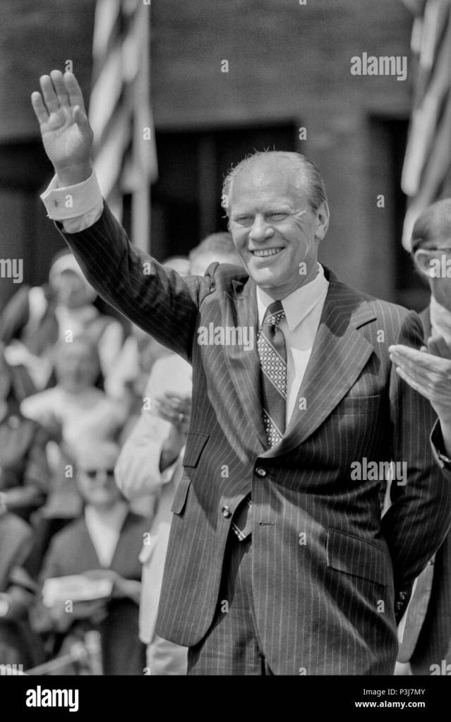 Thousands of Indochina refugees greeted President Ford with applause, waves and smiles when he visited the Fort Chaffee refugee resettlement center near Fort Smith, Arkansas, on his way to a vacation in Vail, Colorado. Officials gave Mr. Ford a briefing on the slow progress of the effort to resettle the refugees.