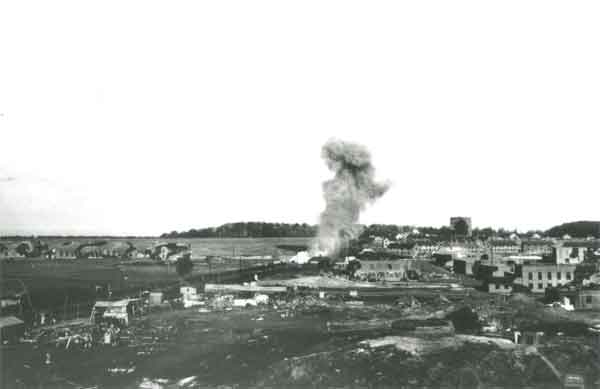 1500 hours: 16 Bf 110s from the EprGr 210 Group and Ju 87s with an escort of Bf 109s manage to cross the Essex coast and make an attack on Martlesham Heath which put them out of action for one day. The Stuka’s made the first attack on the signals station that had not yet been completed. The bombing was not accurate and the signals station suffered only broken windows and a damaged water supply tank. The Bf 110s targeted the administration side of the airfield and destroyed some workshops and the Officers Mess. Two hangars were seriously damaged with a Fairy Battle being destroyed. The attack ruptured the water mains and telecommunications was disrupted.