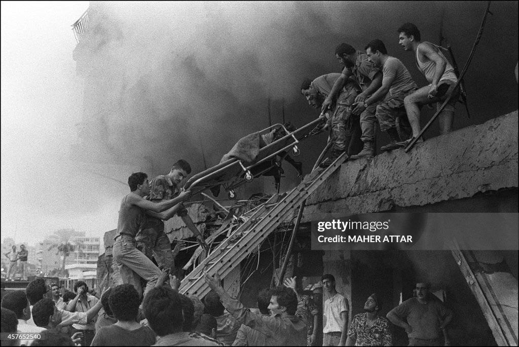 A car bomb killed 50 people in Beirut and wounded 100, the police said. The car, packed with dynamite, exploded outside a crowded supermarket in a Christian suburb of East Beirut. Most of the victims were women. Children accompanying their mothers were among the dead. Rescue workers said they believed other victims were trapped under the debris, but they held out no hope for finding survivors. Commanders of the Lebanese Forces, the main Christian militia, said Muslims were responsible for this blast and for one on Wednesday in East Beirut that killed 15 people. It was estimated that the bomb today had 550 pounds of dynamite. The blast, at 11:45 AM, touched off raging fires and set ablaze about 50 cars in the parking lot. A pillar of black smoke towered above the district. Rescue teams said five bodies were retrieved from the Mediterranean hours after the bombing. The bodies had been hurled 300 yards across the coastal highway into the sea. Fifteen bodies were dug from the basement storeroom eight hours after the blast, and a search for other victims continued well after nightfall. Rescue workers wearing safety helmets, their faces blackened by smoke, struggled for four hours to reach the underground storeroom, where several people choked to death on the smoke.