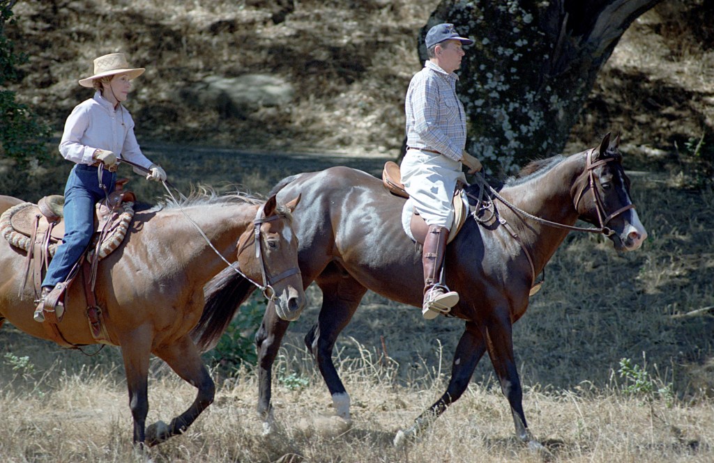 President Reagan goes horseback riding at the Ranch in California.