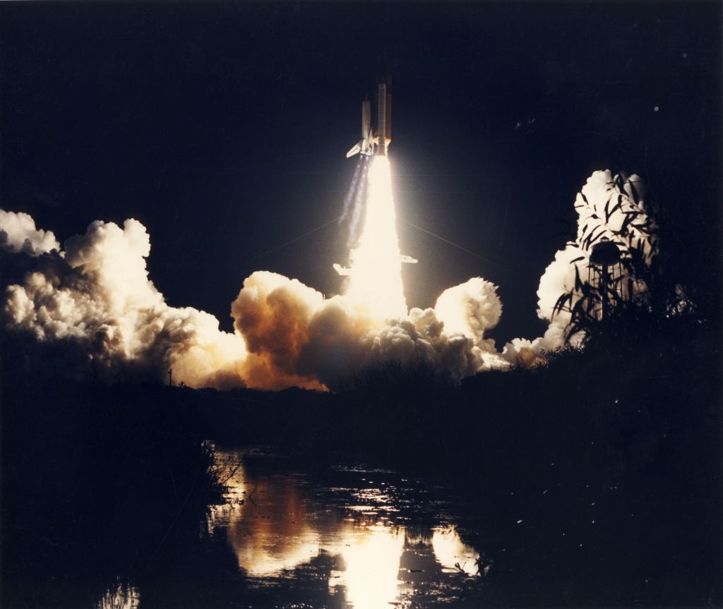 The Discovery rocketed into orbit in the eye of a rainstorm to begin a mission to be highlighted by a daring attempt to repair a stranded satellite. After two postponements in three days because of bad weather and a computer failure, the Discovery barely got off the ground before the darkening clouds moved over the launching pad and the rain descended in torrents. Trouble then seemed to follow the five astronauts into space. A malfunction encountered two hours into the flight forced the astronauts to deploy one of the three satellites in the cargo bay a day early. This was Aussat 1, Australia’s first communications satellite, which was successfully released into orbit at 1:33 PM Eastern daylight time. When the astronauts were inspecting the cargo by remotely controlled cameras, a shield that was to protect Aussat 1 from direct exposure to sunlight stuck in a partly open position. An astronaut used the shuttle’s mechanical arm to nudge the sunshade completely open so the spring-loaded satellite could be released. Any delay of more than six hours could have resulted in radiation damage to the exposed satellite’s electronics.