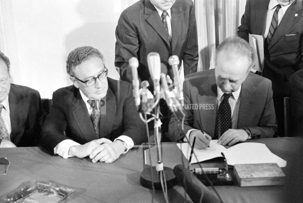 The “Sinai II” agreement was initialed by Egypt’s President Sadat, the day after it had been initialed by Israel’s Prime Minister Rabin. Israel and Egypt formally initialed a new agreement providing for Israel’s withdrawal from some occupied territory in Sinai in return for modest Egyptian political concessions and major pledges of support from the United States. The accord represented a foreign policy achievement for the Ford Administration, which had put intense efforts into seeking this interim agreement. However, as the language of the agreement itself says, it is not a peace accord but one step along the way to a possible diplomatic settlement in the Middle East. In separate ceremonies in Jerusalem and a few hours later in this Egyptian port city, both Israeli and Egyptian leaders hailed the latest measures as a hopeful sign for the future. Secretary of State Kissinger, whose diplomacy helped bring about the accord, took part in both ceremonies, flying here from Jerusalem.