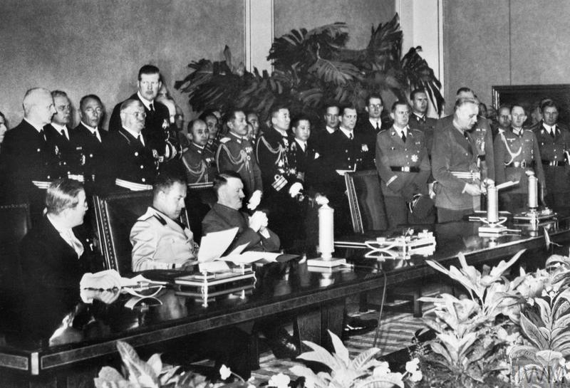 Germany, Italy and Japan signed the Tripartite Pact. The Tripartite Pact was signed in Berlin by representatives of Germany (Chancellor Adolf Hitler), Italy (Foreign Minister Count Galeazzo Ciano), and Japan (Ambassador Kurusu Saburo). In this defensive treaty each nation pledged mutual support in the event of attack by a power not presently involved in the European or Chinese-Japanese conflict. The intent was to keep the United States out of the war and taking a more active position in the Far East.