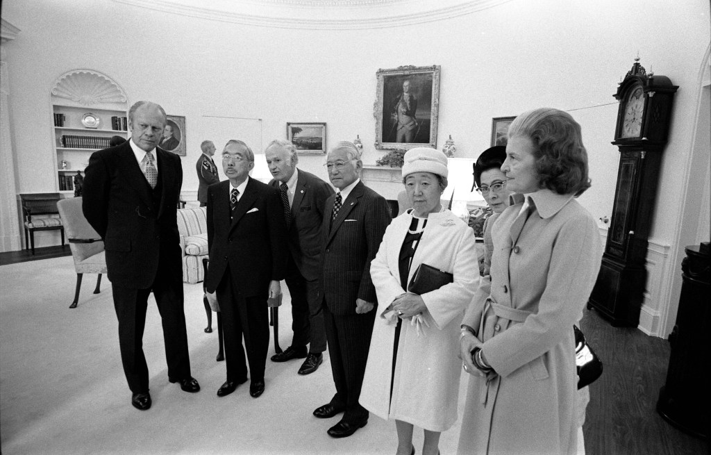 As President Ford welcomed Emperor Hirohito on the South Lawn of the White House, the Japanese leader indicated regret over Japan’s role in World War II and said he hoped his visit to this country would contribute to “everlasting friendship” between the people of their two nations. Replying to President Ford’s greeting as they stood side by side on the crowded South Lawn of the White House, the Emperor said, “Our peoples withstood the challenges of one tragic interlude when the Pacific Ocean, symbol of tranquillity, was instead a rough and stormy sea, and have built today unchanging ties of friendship and goodwill.” Later, in a toast at a state banquet in his honor at the White House, the Emperor expressed himself in even stronger terms. He wished to extend, he said, according to the official Japanese translation, “my gratitude to the people of the United States for the friendly hand of goodwill and assistance their great country accorded us for our postwar reconstruction, immediately following that most unfortunate war, which I deeply deplore.”