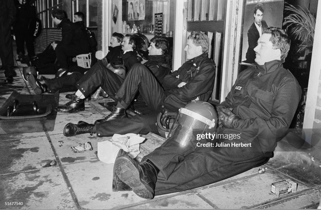 One policeman, PC Keith Blakelock, was killed and 54 others were wounded as black and white rioters armed with shotguns, gasoline bombs and bricks fought with 500 policemen in the Broadwater Farm estate in Tottenham, north London. Officials said the slain policeman, who died from multiple stab wounds in the neck, was the first to die in inner city riots in Britain. Three of the wounded officers and four British journalists, including two members of a BBC television crew, were reported to have been hit by shotgun fire. The riots were sparked by the death of a black woman who collapsed as police searched her home in Tottenham for stolen goods.
