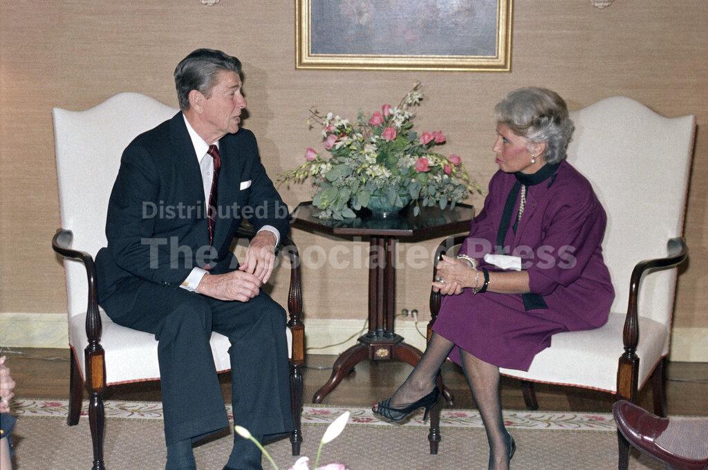 President Reagan speaks with Assistant for National Security Affairs Robert McFarlane regarding the attempted defection of a Soviet sailor in New Orleans, Louisiana.