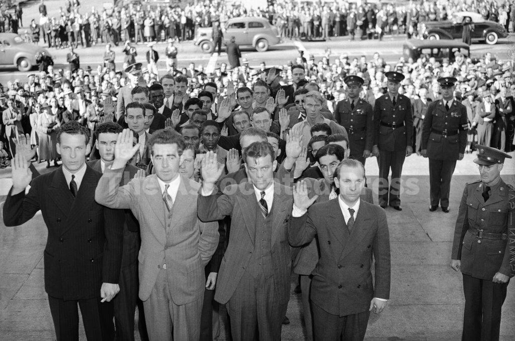 Hundreds of young men from the eight western states virtually all of them volunteers began reporting for duty today as the first of an initial contingent of 1,630 being taken from the Ninth corps area for a year’s military service. Many of the “selectees,” as the army classifies them, were passed through the various induction centers and started already on their way to army camps, after a physical checkup, fingerprinting and after taking the oath. Four months of basic military training faces the young men from 21 to 36, after which they will be taken into the regular army for their final eight months in capacities to which they are best fitted.