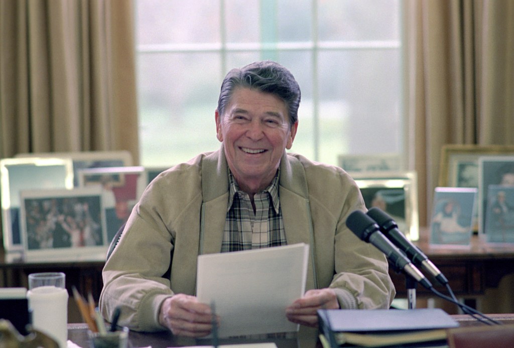President Reagan meets with senior administration officials to discuss the sale of arms to Iran.