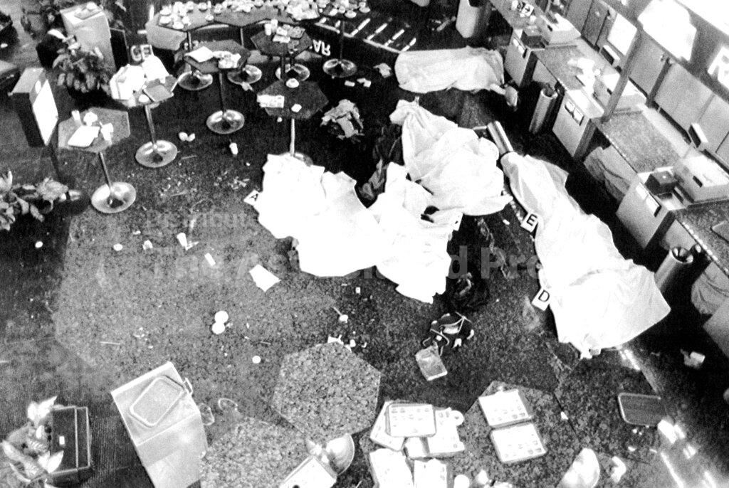 At 08:15 GMT, four Arab gunmen walked to the shared ticket counter for Israel’s El Al Airlines and Trans World Airlines at Leonardo da Vinci-Fiumicino Airport outside Rome, Italy, fired assault rifles and threw grenades. They killed 16 and wounded 99, including American diplomat Wes Wessels, before three of the attackers were killed by El Al security, while the remaining one, Mohammed Sharam, was wounded and captured by the Italian police. The dead included General Donato Miranda Acosta, Mexican military attaché, and his secretary, Genoveva Jaime Cisneros.