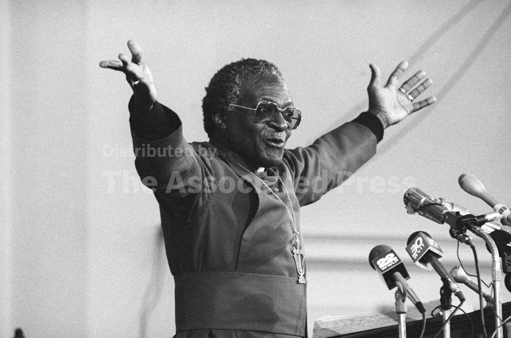 Bishop Desmond Tutu, beginning a two-week visit to the United States, said at a church service in Hartford, Connecticut today that God had a special place in His heart for weak and voiceless people, such as those living under apartheid. Bishop Tutu, the winner of the 1984 Nobel Peace Prize, addressed a racially mixed group of about 500 people at the Horace Bushnell Congregational Church.