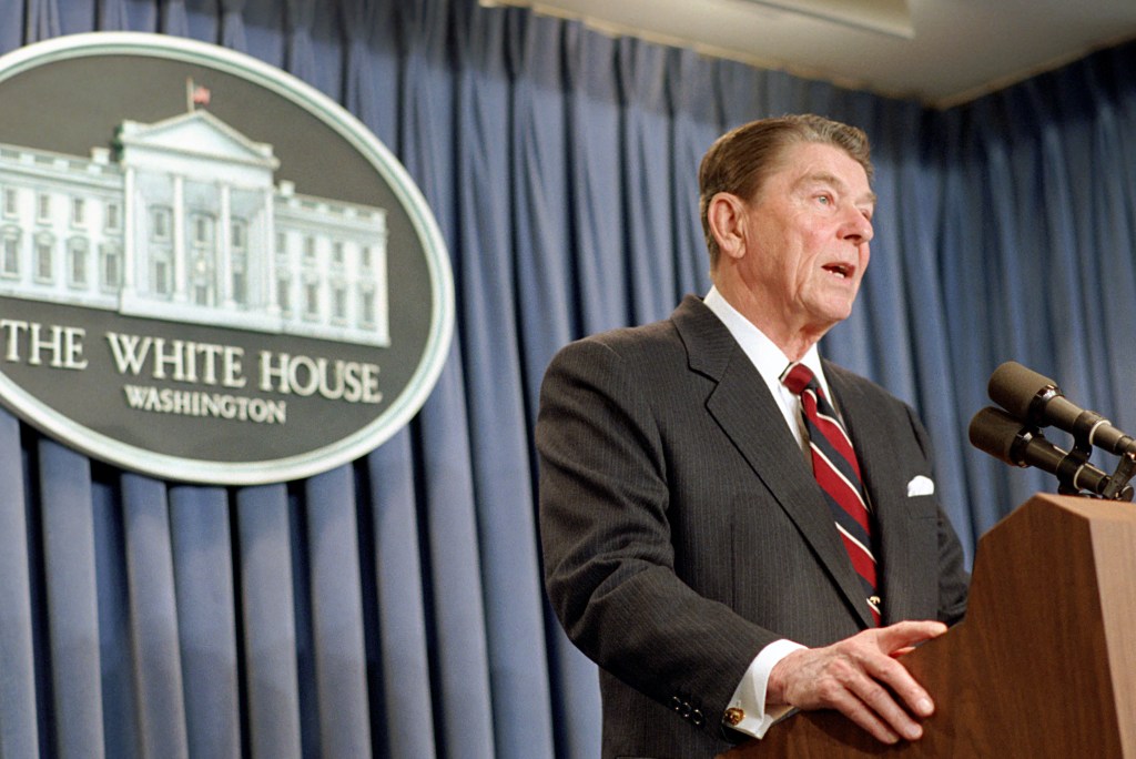 President Reagan participates in a meeting to discuss recently completed and future trips to the Soviet Union under the program People to People.