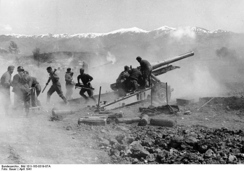 At dawn Germany began Operation MARITA (Unternehmen Marita) when the XL Panzer Corps crossed Greece’s border with Bulgaria at two separate points. The offensive on Greece begins with an assault by the German 18 Corps on the Greek left flank. This is followed by an attack by the German 30 Corps on the right flank of the Greek Army of Eastern Macedonia under General Bakopoulos. German, Hungarian, and Italian forces invaded Greece from Bulgaria. Unlike the success in Yugoslavia, the invasion was slowed by Greek and British troops at the Metaxas Line. After sundown, a Luftwaffe raid on Piraeus, Greece, got an unexpected boost when the ammunition ship Clan Fraser was hit, with the resulting blast doing more damage to the port facilities than the aerial bombs dropped by the Germans; the explosion also caused the sinking of 11 other freighters.