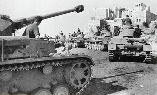 In an event of worldwide importance, on 27 April 1941 the Wehrmacht enters and occupies Athens at 09:25. German soldiers immediately climb up to the Acropolis beside ordinary tourists and raise the Swastika flag. The Wehrmacht troops, fueled by vast supplies of oil and related valuable items captured in the capital, continue south, pursuing the retreating Commonwealth troops.